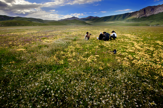 沉浸在花海中的摄影家