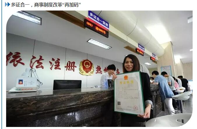 5月,国办印发《关于加快推进“多证合一”改革的指导意见》,在全面实施“五证合一、一照一码”登记制度改革和“两证整合”的基础上,将涉及企业(包括个体工商户、农民专业合作社)登记、备案等有关事项和各类证照进一步整合到营业执照上,实现“多证合一、一照一码”。