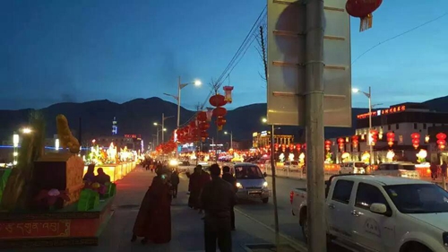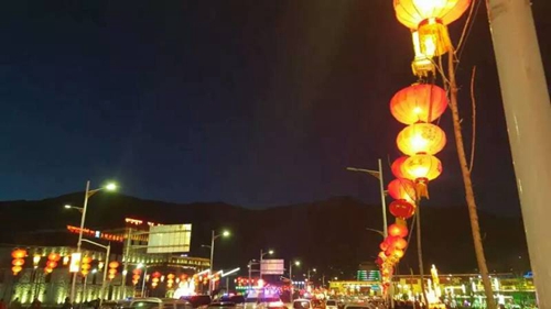 晚7时后,玉树街头巷尾路灯初亮,继而各式花灯陆续绽放,十里长街五颜六色璀璨辉映,在初笼的天宇夜幕下,远山近水的自然生态之美、屋宇廊檐的现代建筑之美、花灯初上的城市文化之美、居民窗户里透出的幸福和谐之美,在高原天宇下结合得是如此水乳交融的完美。