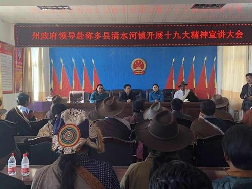 在清水河宣讲时,才让太州长用基层干部、老党员和群众听得懂的朴实语言,系统阐述了党的十九大主要精神,联系五年来的巨大变化,强调了习近平总书记是全党拥护、人民爱戴、当之无愧的领袖,重点宣讲了十九大报告中涉及藏区发展和民生改善中的惠民政策,并结合实际就抓好贯彻落实提出了具体要求。才让太指出,党的十九大是在全面建成小康社会决胜阶段、中国特色社会主义进入新时代的关键时期召开的一次十分重要的大会。大家一定要把十九大精神落实在精准脱贫、生态环保、疾病防控等各项具体行动上,锐意进取、奋力拼搏,为努力实现决胜小康社会作出新的更大贡献。才让太要求,全县各级党组织特别是乡镇村社要用群众喜闻乐见的方式宣传大会精神,传播党的声音。党员干部要带头先学一步、学深一层,结合乡村实际带头抓落实,确保把党的十九大精神深入人心,激发广大农牧民爱党爱国爱领袖的意识,激发脱贫致富奔小康的信心。